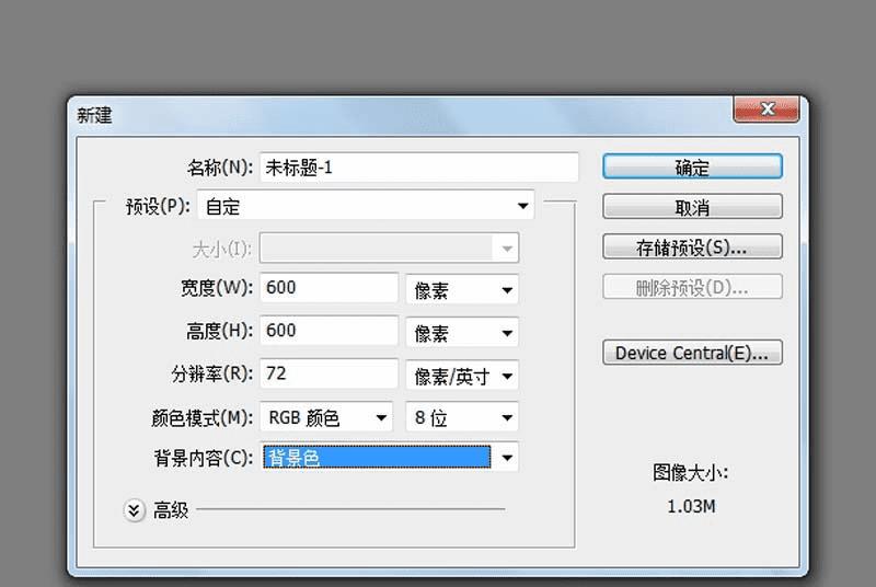 1、首先启动Photoshop cs5,新建一文档,大小设置为600*600,分辨率为72,背景颜色为黑色。