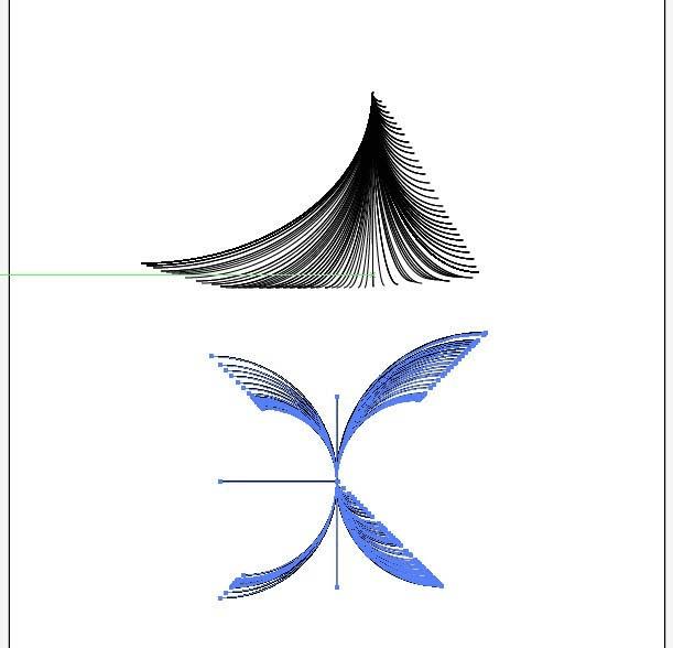 6、选择弧线工具,绘制弧线时,按住shift+f键,再释放鼠标左键,松开快捷键,可绘制镜像的圆弧线。绘制弧线时,拖拽鼠标的同时按编辑区的光标上下移动,可增减圆弧的曲率。