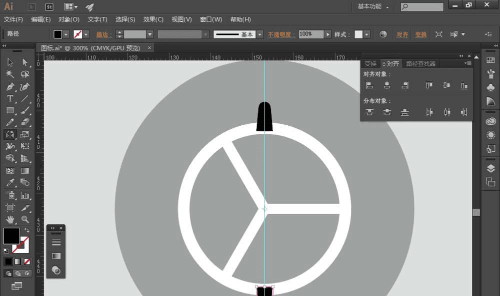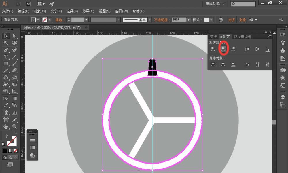 8、放这个波纹在圆环的顶部位置,同时选择波纹和圆环,找到【对齐】,选择【水平居中对齐】,让这个波纹图形相对圆环水平居中对齐,如图: