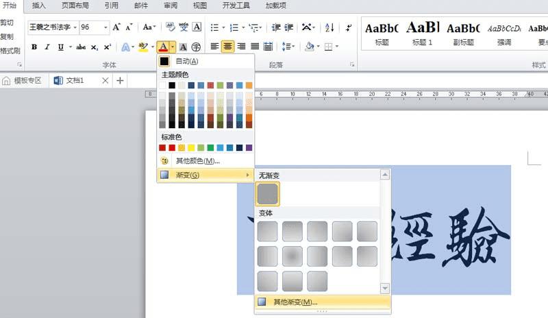 2、选择文字内容,执行开始-字体颜色-渐变-其他渐变命令,调出设置文本效果格式对话框。