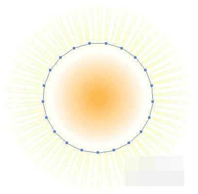 设置填充色为(橙色-白色-黄色)的(径向)渐变,并不设描边颜色。如图: