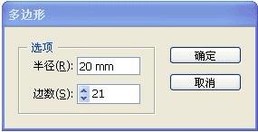 选择工具栏里的(多边形工具)按钮,在空白处单击左键,弹出(多边形)对话框,进行参数设置,得到: