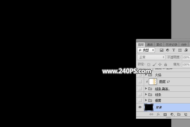 2、把前景色设置为黑色,然后用油漆桶工具把背景填充黑色。