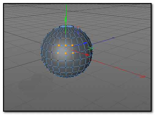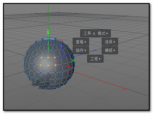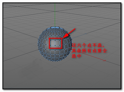 3、初学C4D的朋友可能会按住SHIFT键,用实时选择工具,把其余的点一个一个的点选;也有可能有些朋友会用框选工具把整个球体的点全选中后,再按CTRL键,把这六个点取消选中。