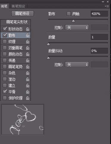 7、可以到网上找爱心的笔刷,也可自己画,然后编辑自定义笔刷