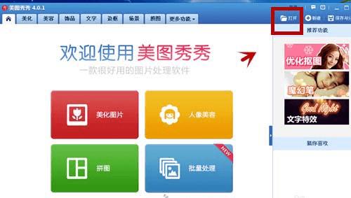 2、在【打开一张图片】中选择图片名称,打开在美图秀秀软件,在单击【场景】中静态场景,再单击【静态场景】中的【节日场景】。