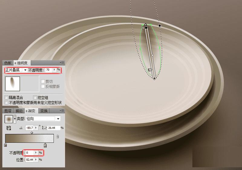 接下来,新建立一个图层,绘制餐具在盘子上的投影