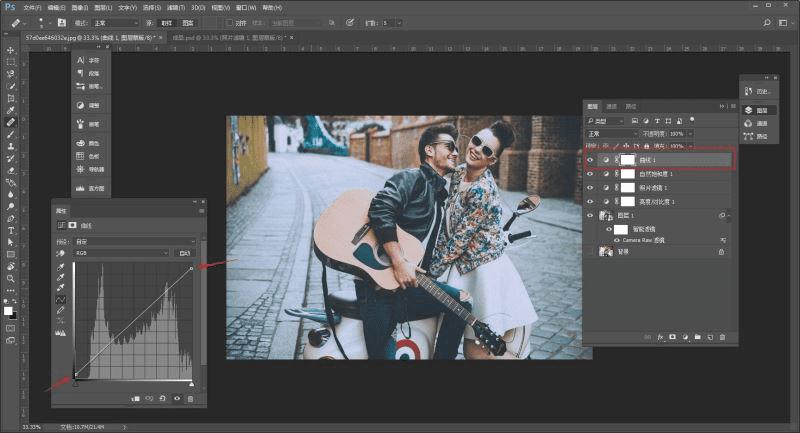 如果你觉得画面还想再灰暗点,就再加个曲线: