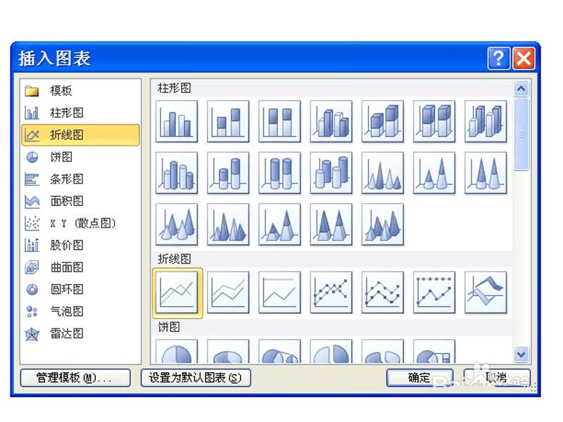 1、首先启动ppt2010,执行插入-图表命令,选择折线图中的第一个图表。