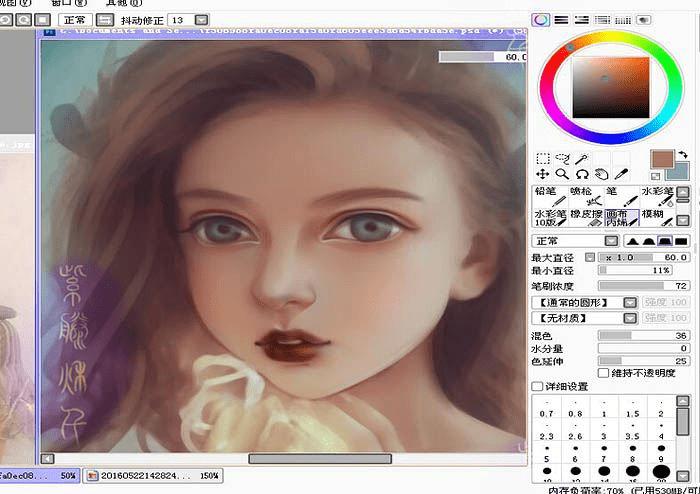 33、用水彩笔模糊头发,用画布丙烯大概铺出头发的走向。