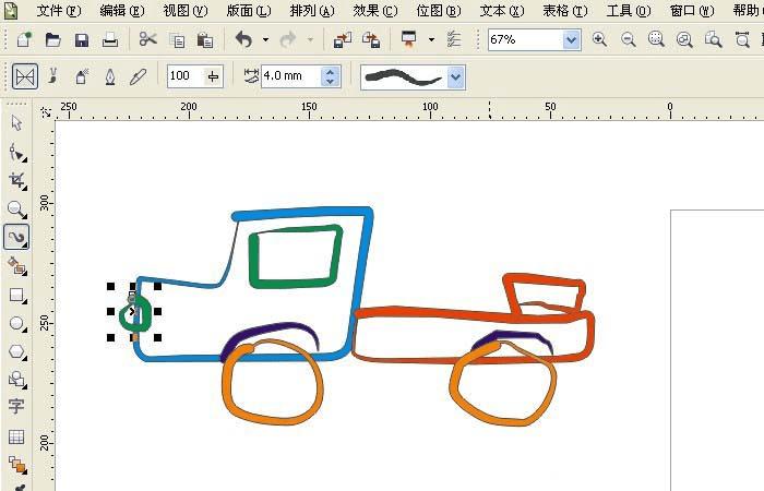 通过cdt使用艺术笔工具画洒水车图形的步骤