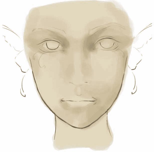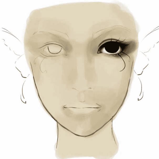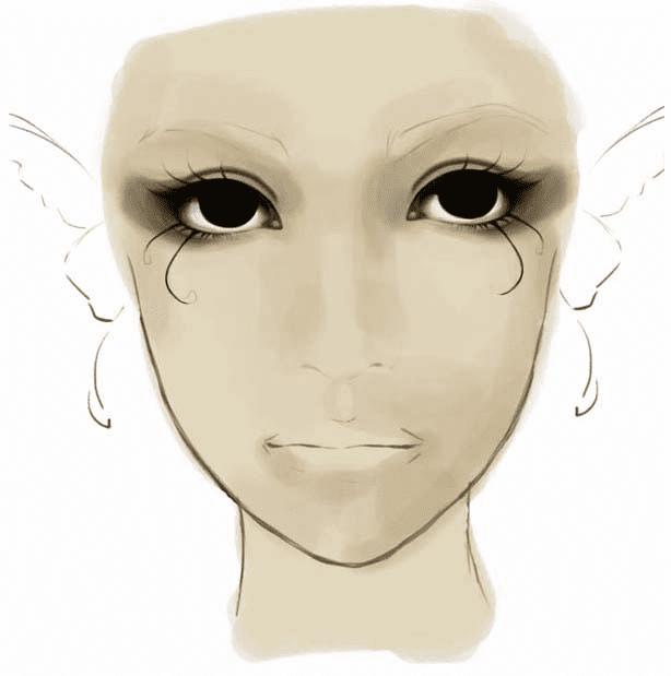 8、这时候大致的人样已经出来了。皮肤不衔接处就用涂抹慢慢磨。画上眼皮的亮色(涂点白色用减淡扫)。
