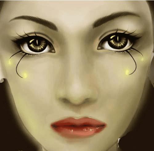 5、这步好像快了点。眼睛的高光很重要,有神没神就看它了,其实我有时也拿捏不好,会一直尝试。这时候低透的橡皮是我的最爱,或者用淡色打底,再用减淡工具点出最亮的地方。触须下面的发光体比较方便,画泪珠状,再侧面画一点点白色,用有模糊外圈的画笔(大点)点几下就行。