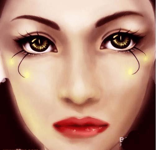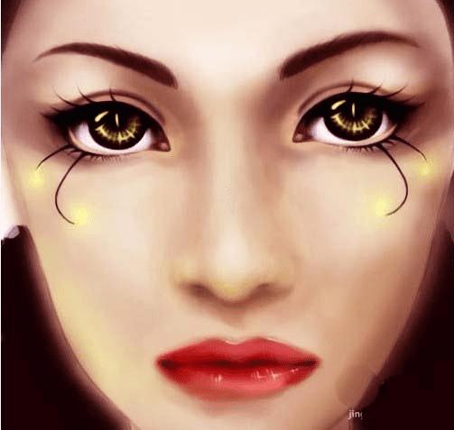 3、开始画眼睛。眼线最好不要用黑色的,这画要妖媚点所以黑色N深。(虽然画好的没看出妖媚的点)先画眼线,之后再画眼角,不透明度低点。把眼线和眼角的暗红色慢慢过渡。.眼白不是纯白的。要在周围扫圈灰色。睫毛一直用5号笔画。