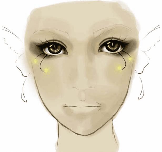 4、继续画另只眼睛(我很偷懒 ,就翻折了下,不过翻折的眼睛因为眼珠的位置会显的没神,就要改动下眼珠的位置。)眼尾部的眼影用低透的画笔慢慢刷。