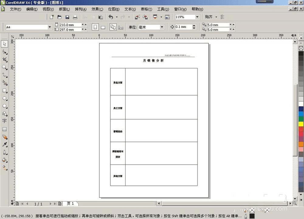 6、线成一条一条了,如果再修改,要么这CDR里慢慢调,要么你就在WORD调好再导入