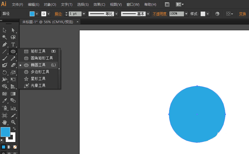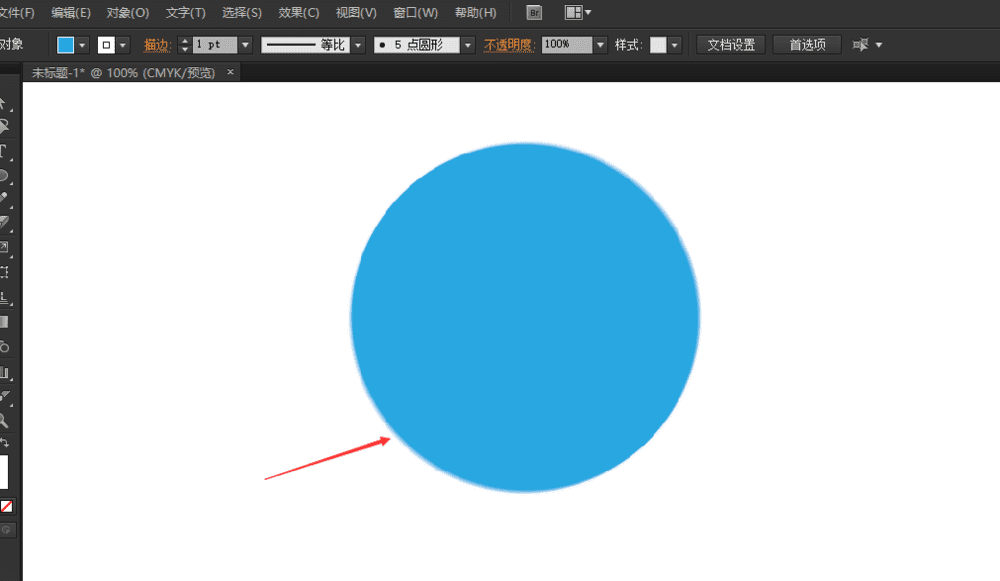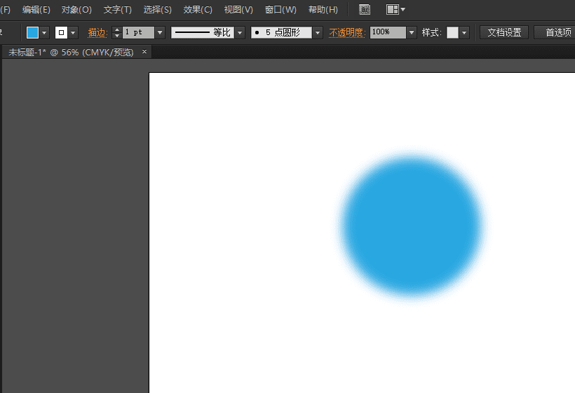 1、为了清晰说明,此例中以一个圆形的模糊效果作为演示。新建一个页面,利用椭圆工具绘制一个正圆。