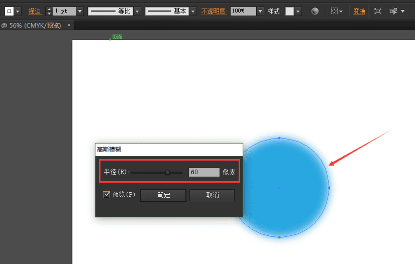 4、点击确定,通过高斯模糊制作的模糊效果就完成了。需要注意的是,AI中做了模糊效果的图形,也是矢量图。