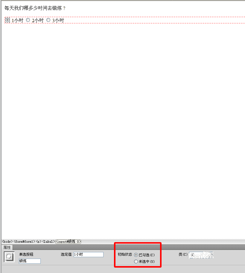 给Dreamweaver单选按钮出一道单选题的方法