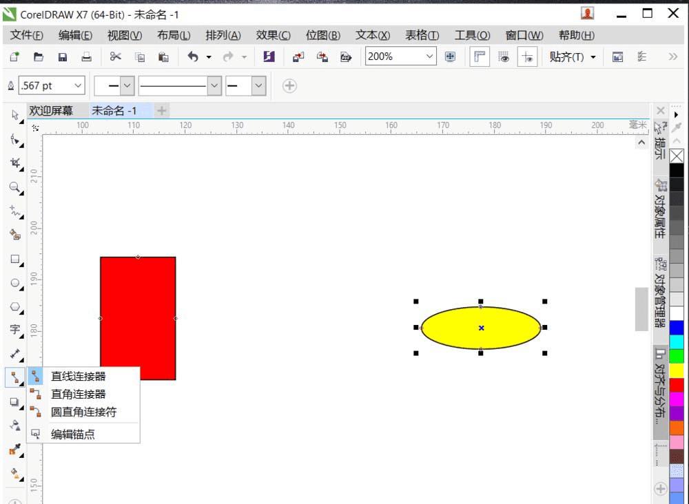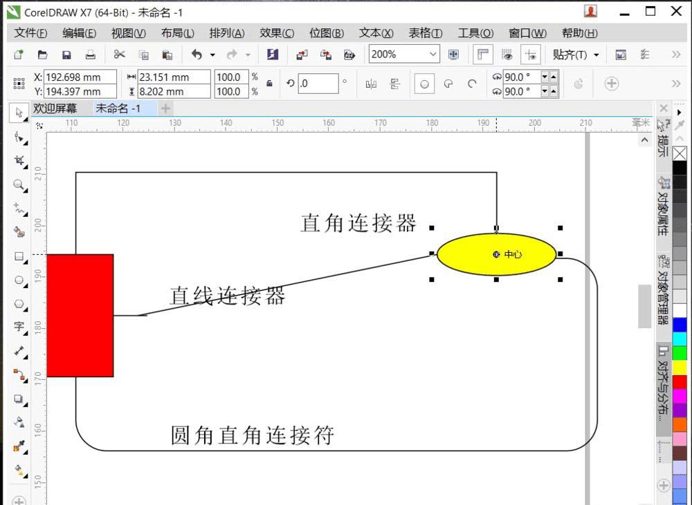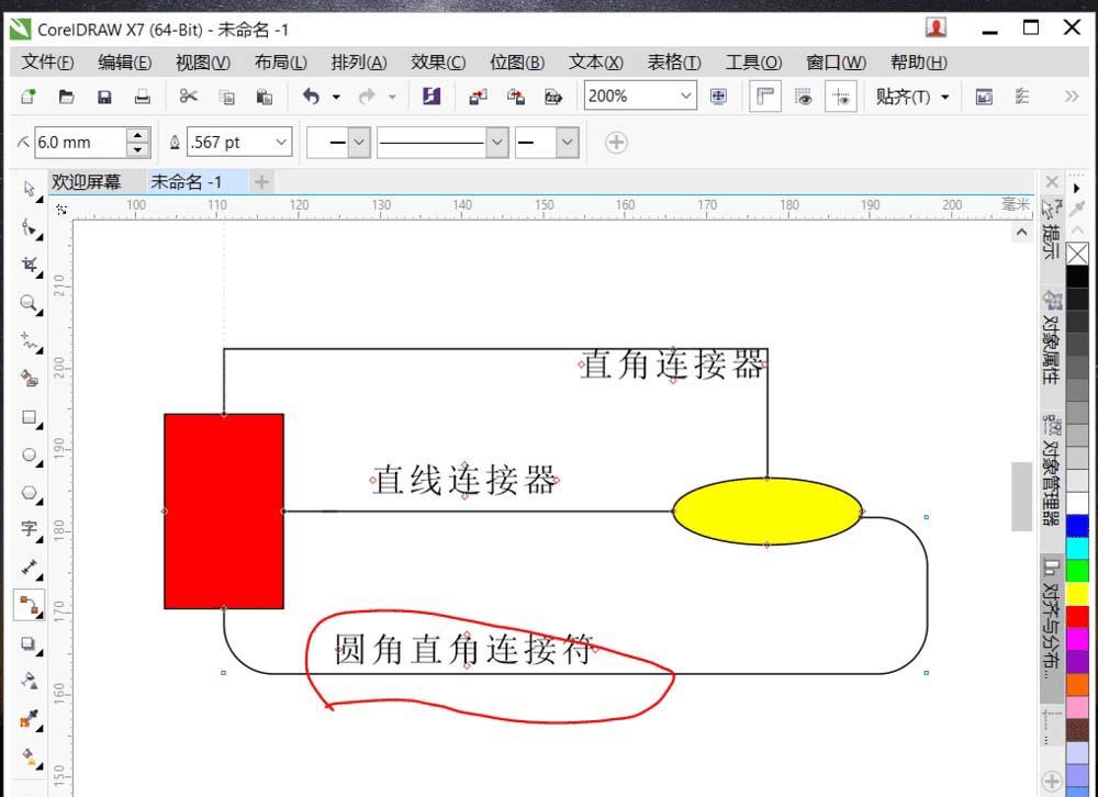 cdr中有连线工具箱,可以直接给图形做连线,其中包括直线连接,直角连接,圆直角连接等,下面我们就来看看详细的教程。