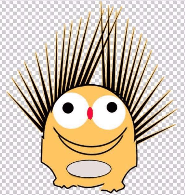 6、这一步的关键就是刺猬的刺了,我们使用钢笔工具先画出一边的刺,再复制出另外的一边刺,这个刺所在的图层一定是在身体图层的下面,从而让刺有着一种绽放的感觉。最后,我们给刺猬加上一只可视的小口袋。这个刺猬图片就绘制完成 了!