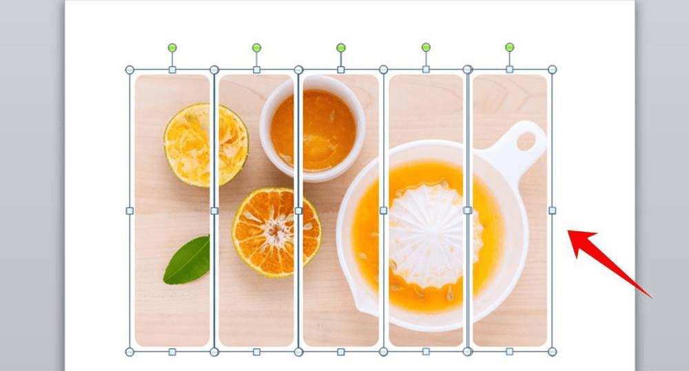 10、复制设置好的圆角矩形,在水平方向上覆盖图片的其他区域,由于之前已经计算好了圆角矩形的宽度,所以刚好用5个圆角矩形就能将图片均匀得分割成5个部分,其效果如图所示。