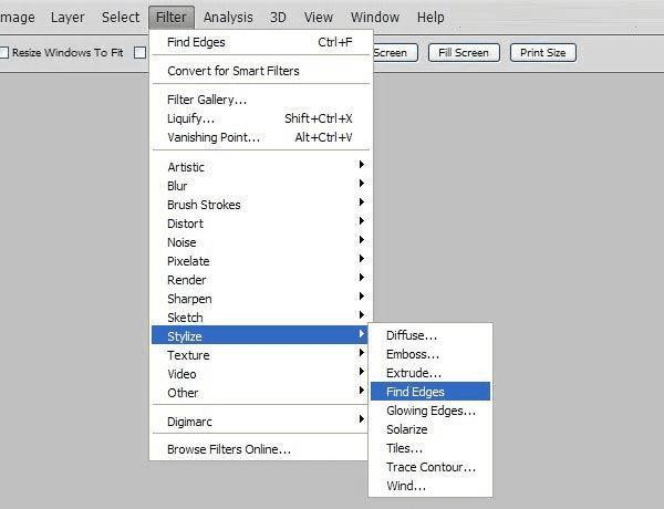 8. 现在我们打开滤镜>风格化>查找边缘。