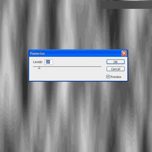 我们要在图像里找到色调分离,给图像制作纹理~图形>调整>色调分离,色阶参数设置为 25,然后我们就可以看见木质纹理被很好的分离出来了。