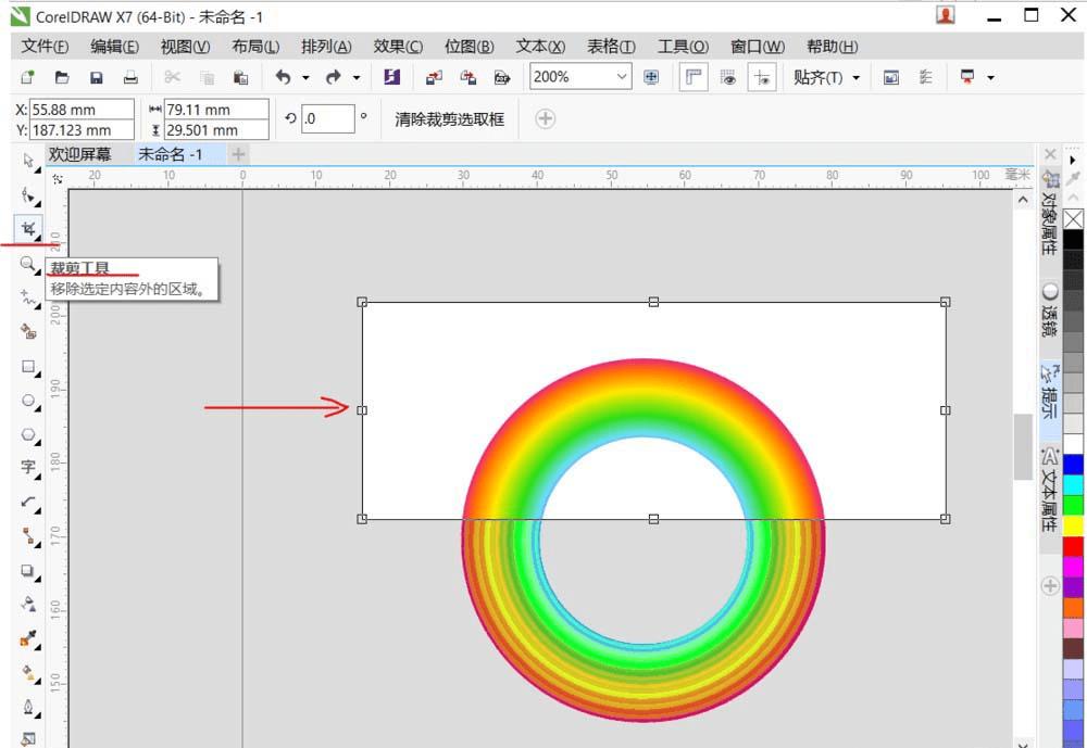 6、选择裁剪工具,选中图形合适位置进行裁剪