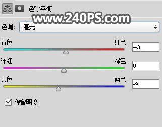 9、创建色彩平衡调整图层,对阴影、中间调、高光进行调整,参数设置如下图,确定后同样的方法创建剪切蒙版。