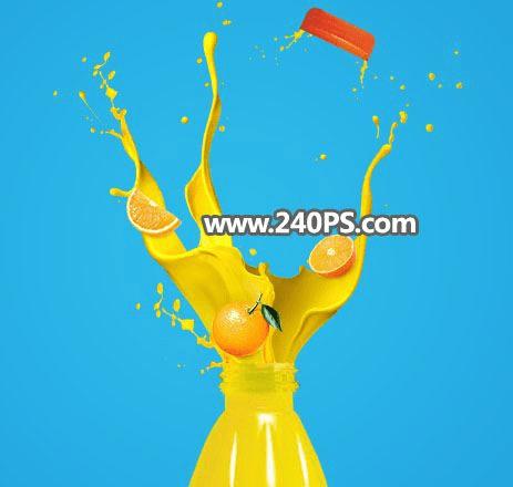 在ps中制作果粒橙饮料冲破瓶盖果汁喷溅效果的宣传海报的方法(7)