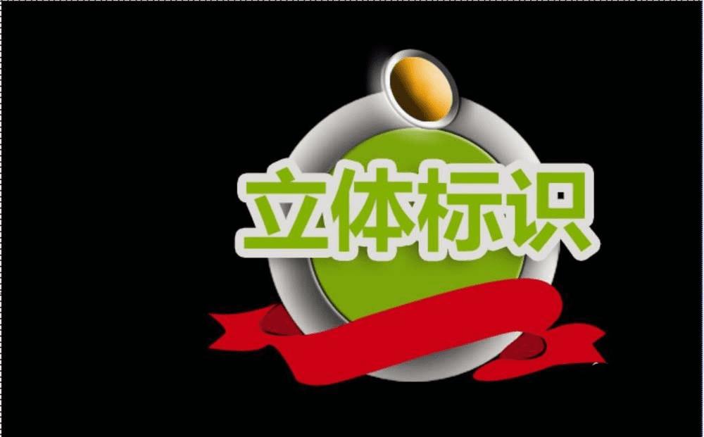 5、在立体标识的中间打上绿色的文字,使用白色为这个文字进行描边。