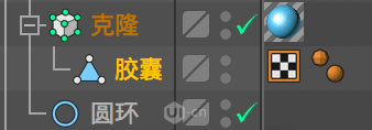 克隆属性选择对象,并把圆环拖拽到克隆对象属性中,这个方法再上次推送的教程中有用到,如果你做了上次的教程,现在这个应该不是问题了吧