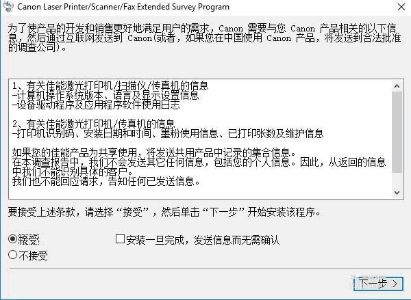11、选择接受,点击下一步。窗口自动关闭,回到刚开始的主窗口。点击下一步