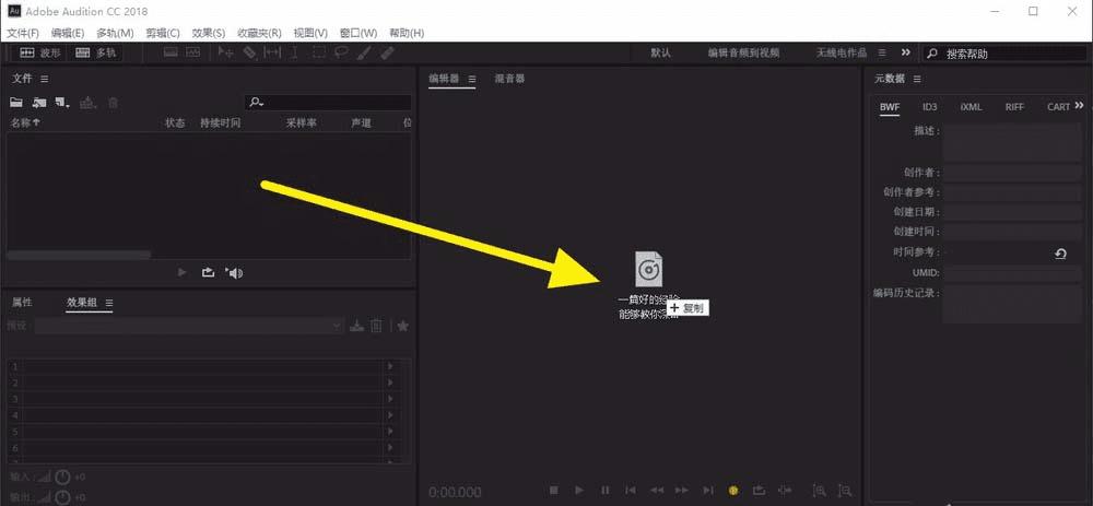 1、首先把我们想要处理的音频拖动到编辑器界面