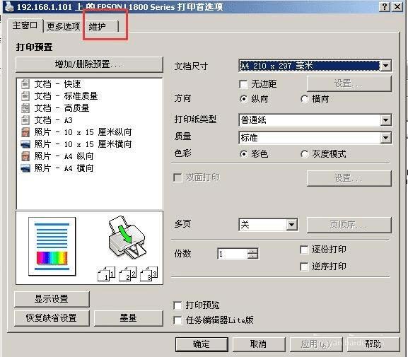 epson l1800 series打打印机打印的图颜色不准或者是一段一段的中间有线,这种情况就该清洗打印头了,下面我们就来看看爱普生L1800打印机清洗打印头的教程。