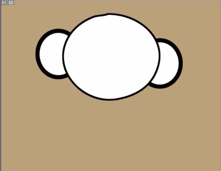 2、接下来就是小猴子的两只耳朵,我们同样选择矢量圆形工具,用白色来进行填充,再用黑色来进行描边。有了一左面的耳朵之后,我们可以再复制到右面,耳朵所在的图层应该在头部图层的下方。