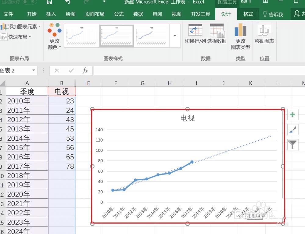 6、添加后的效果如下图所示,我们可以据此在一定程度上来预测数据。
