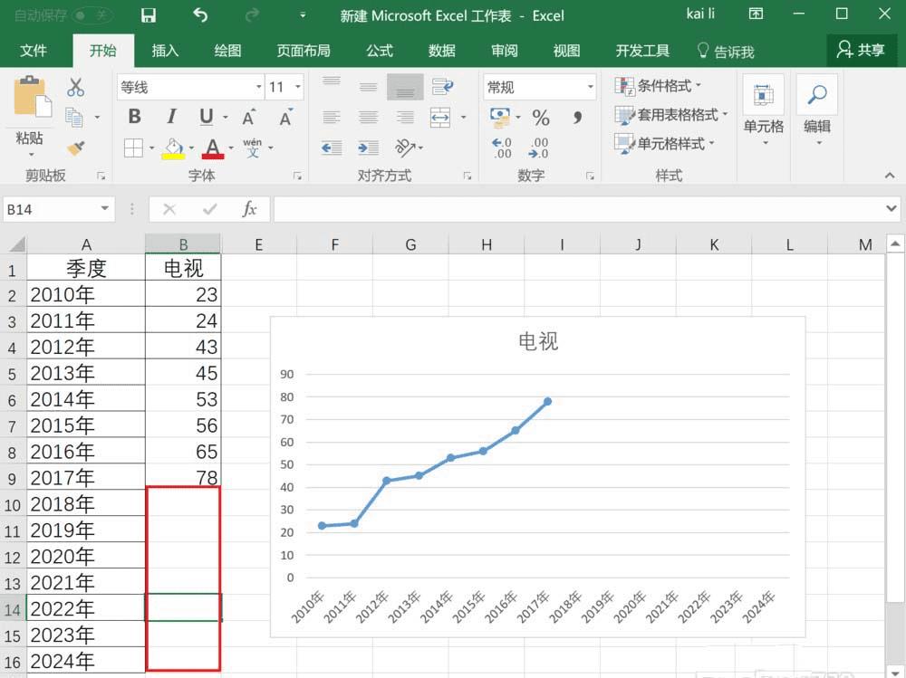 在excel2016表格中制作趋势线图标预测数据的步骤
