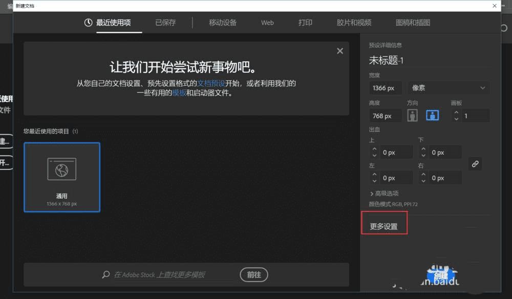 1、打开AI软件,首先我们要学习的是怎么新建一个画布,和新建画布时的一些参数设置