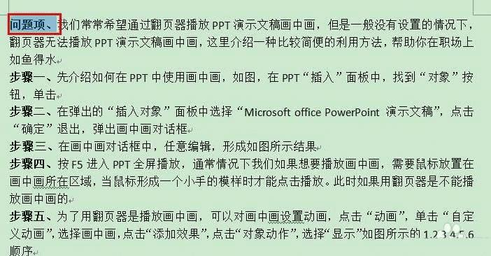 1、在Word中任意输入一段文字,选择段落加黑的文字,如图中的“问题项”: