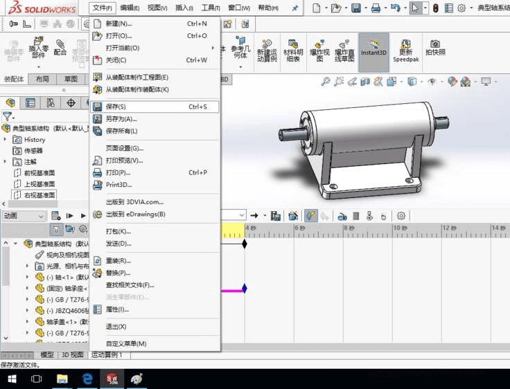8、至此动画创建完成,保存装配体模型。