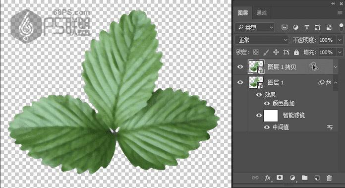打开树叶图片右键单击图层,选择转换为智能对象 ,然后Ctrl+J复制它。点击复制图层边上的眼睛隐藏复制图层并确保选择了原图层。