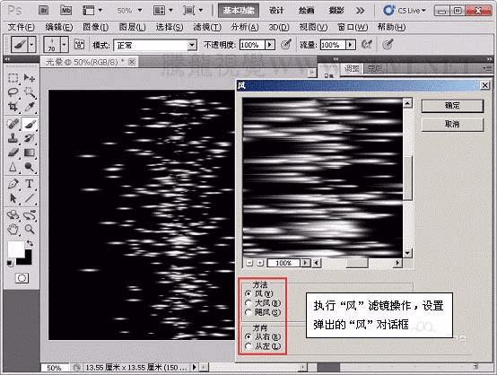 6、执行“滤镜”→“风格化”→“风”滤镜命令。