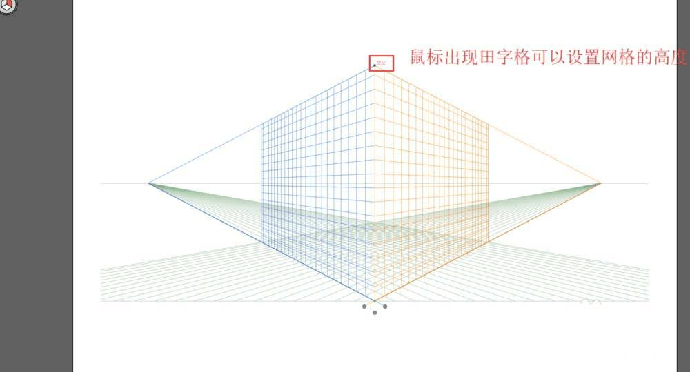 当选中同时网格上方点,鼠标出现田字格的时候可以调节透视网格的高度