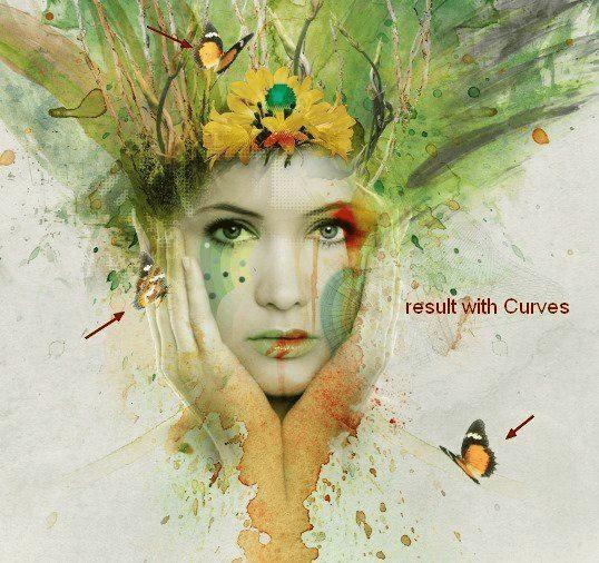 8、将蝴蝶的图层建立为图层组,将图层组的混合模式设置为 正常 100%。在组内新建一个曲线调整图层,为蝴蝶提亮。