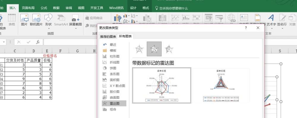 在excel2016表格中制作带辐射线的雷达图的方法