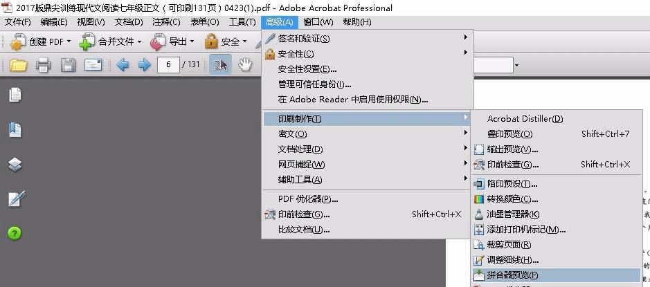 4、在菜单中选择“高级-印刷制作-拼合器预览”;