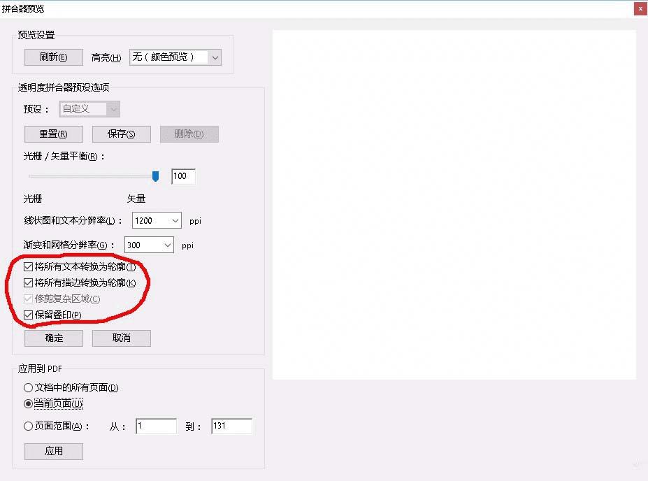 5、“将所有文本转换为轮廓、将所有描边转换为轮廓、保留叠印”等选项全都勾选上;