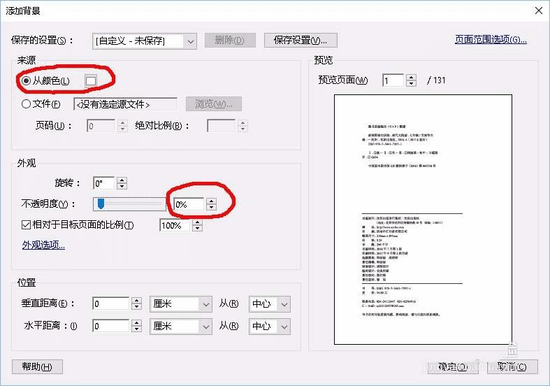 3、来源:“从颜色”默认一般为白色,如果不是白色请选成白色,不透明度改成0%,点确定;